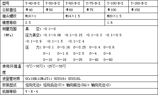 Y-60B-Z軸向無邊壓力表技術參數(shù)表: