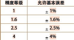 其次是正確選擇壓力表的精度等級。壓力表的精度等級對應(yīng)允差關(guān)系如下表: